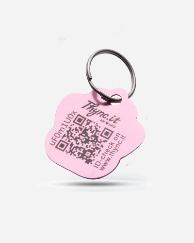 Tiermarke Pfotenform Aluminium Rosa – QR-Code Tier-ID mit Online-Profil
