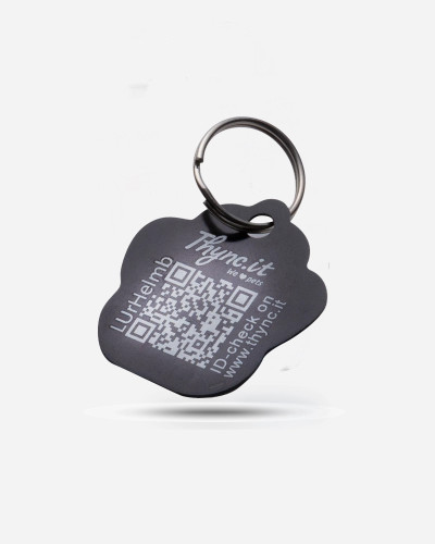 Tiermarke Pfotenform Aluminium Schwarz – QR-Code Tier-ID mit Online-Profil