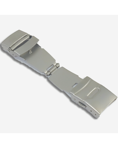 Der rostfreie Ersatzverschluss für Silikonarmbänder überzeugt durch seine robuste Verarbeitung und eine zuverlässige Verriegelung. Der Verschluss lässt sich nur öffnen, indem zuerst der Sicherungsbügel angehoben und anschliessend beide seitlichen Rasten gleichzeitig gedrückt werden.