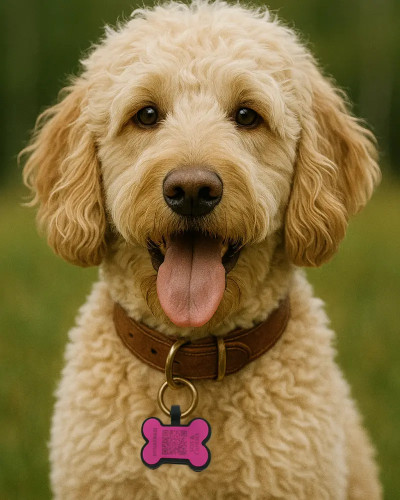 Hondenpenning botvorm siliconen Glow Roze – QR-code dier-ID met online profiel
