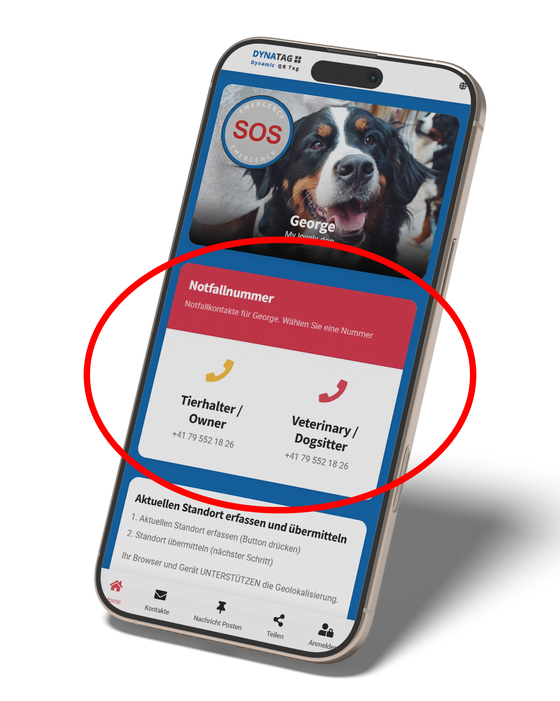 De SOS Dierenpenning van DynaTag is meer dan een hanger – het is de digitale levensverzekering voor je huisdier. Eén scan is genoeg en alle belangrijke gegevens verschijnen direct.