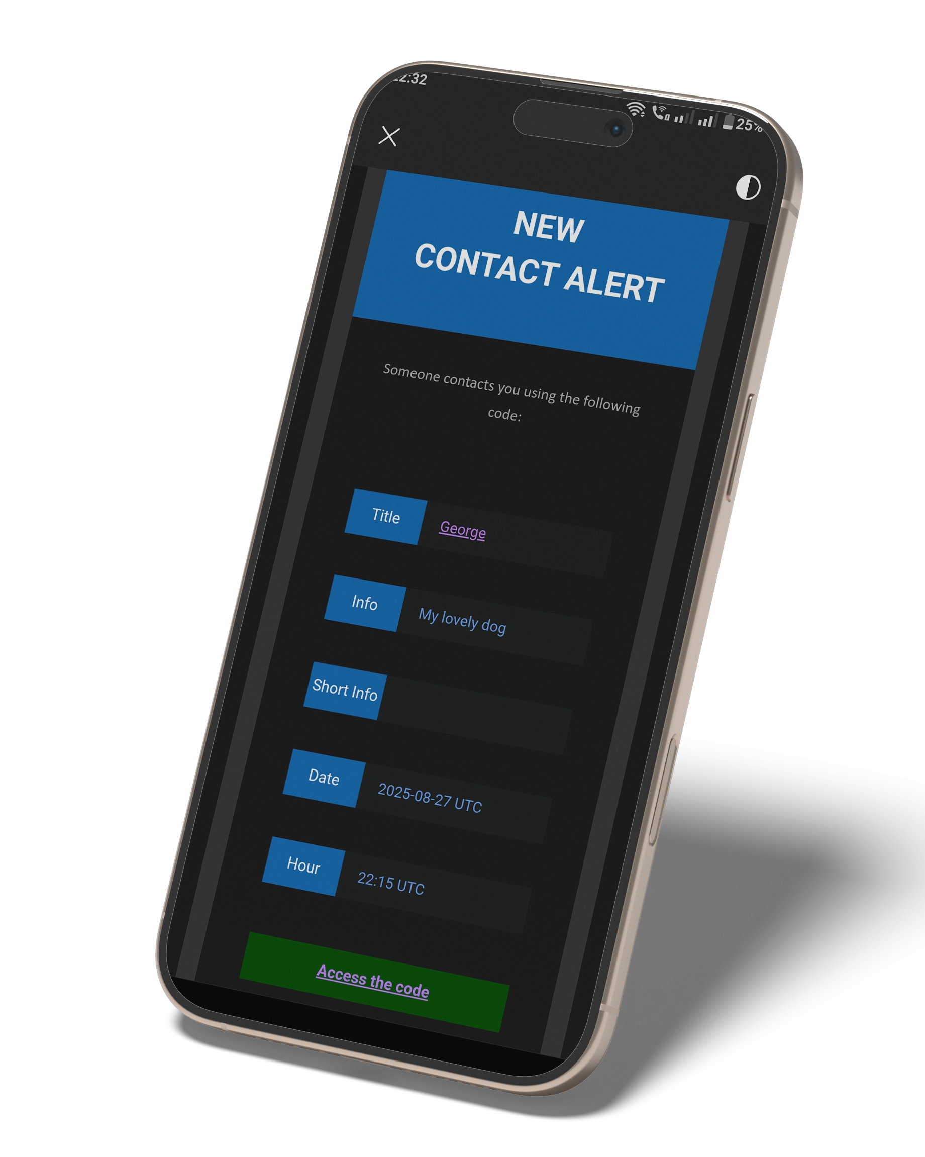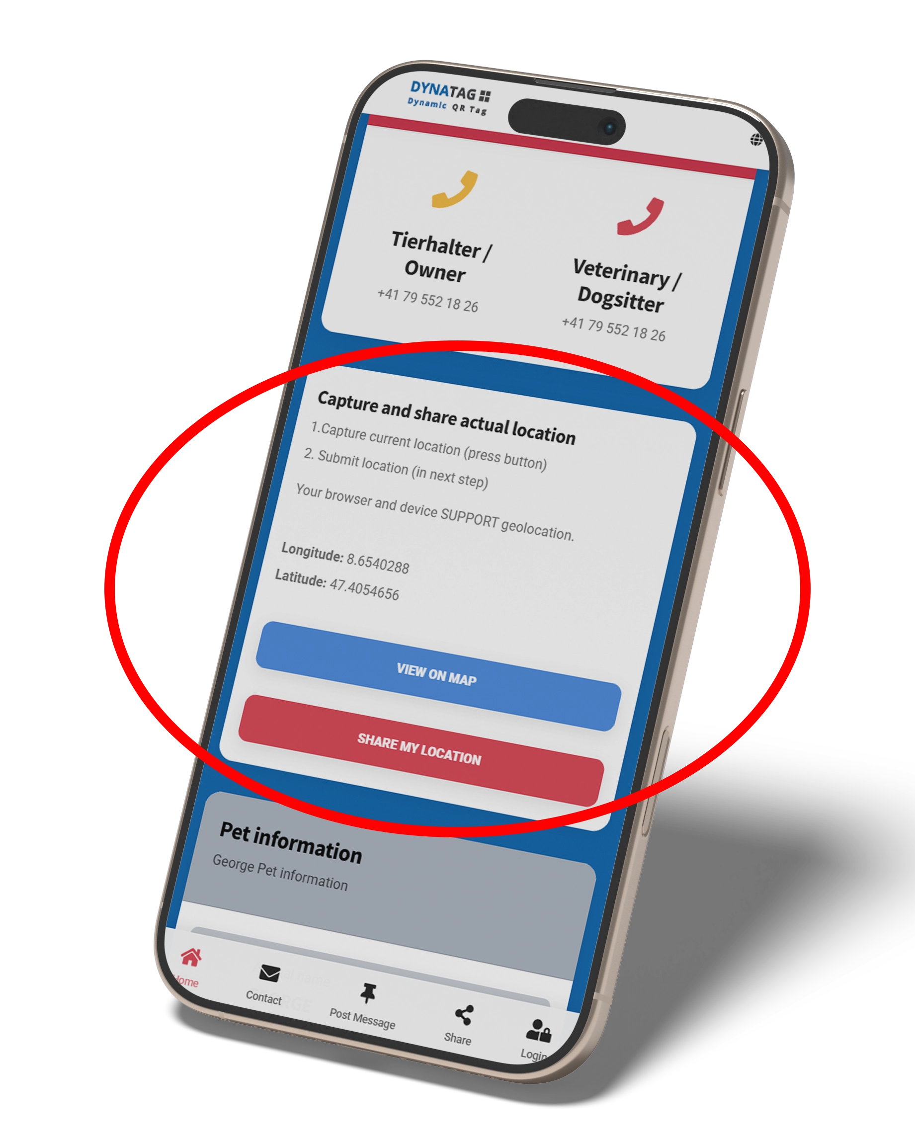 Als iemand jouw huisdier vindt, kan diegene eenvoudig de QR-code op de tag scannen. Het profiel van je huisdier verschijnt met belangrijke gegevens zoals naam, medische behoeften en jouw contactinformatie. De vinder kan direct contact met je opnemen en zelfs zijn locatie delen, zodat je huisdier snel en veilig teruggebracht kan worden.